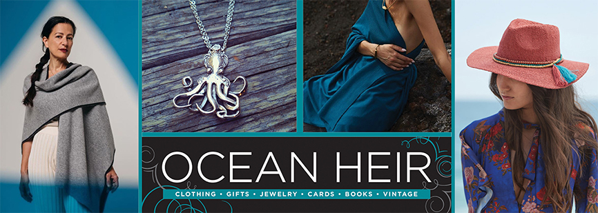 Ocean Heir also features the largest selection of handmade letterpress greeting cards and hats in Cambria. You'll find premium candles, perfumes and oils and jewelry that is distinctive and affordable. Be prepared to rendezvous with stylish clothing layered with attitude. Contemporary wearables, soft sweaters, textured scarves, kimonos, ponchos and jackets with a rock and roll edge and deep threads of classic bohemia. Our goods are curated through long-standing relationships with artists and designers who have a passion for what they produce. Be sure to check out the fabulous vintage inventory too! Forage through baskets of old denim and LPs ...