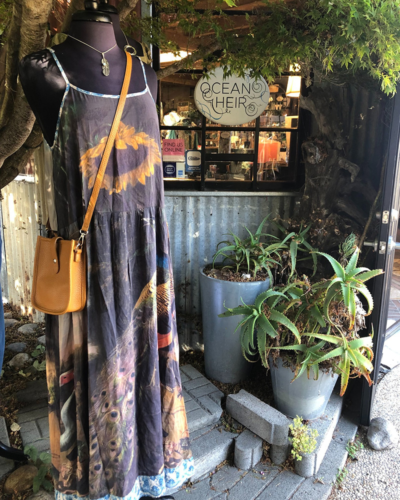 We invite you to treat yourself to a glass of fine wine at our neighbor's tasting room, Cayucos Cellars, or grab a cup of joe at Lilly's, and meander through the luscious gardens and succulents and past lively bubbling fountains scattered about the courtyard. Take a pause on our beautiful mosaic bench…Eventually, whatever path you take will lead to Ocean Heir where a friendly, fashionable staff will assist you with old school customer service in a one-of-a-kind shopping retreat.
